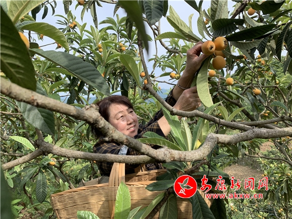 和往年相比,今年的枇杷并不繁密。村民張鳳琴說:“考慮到結得太繁密,影響枇杷單果的個頭和口感,在掛果時就進行了疏果處理。”邊介紹張鳳琴摘下面前成熟的枇杷供游客品嘗。撥開碩大的枇杷,橙黃的果肉,鮮嫩多汁,咬一口甜中帶酸的味道,喚起塵封已久的味蕾記憶。