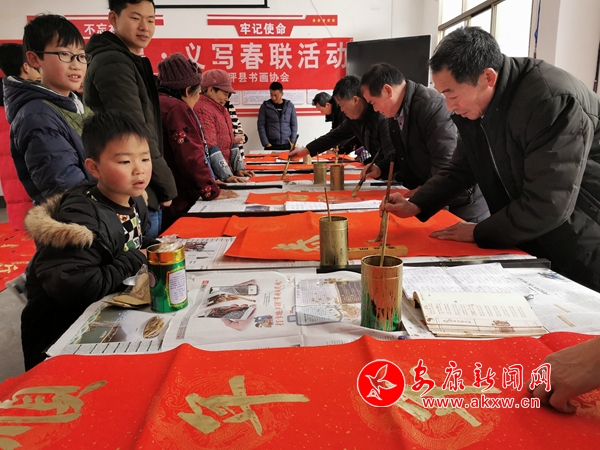 1月13日,鎮(zhèn)坪縣上竹鎮(zhèn)組織開展義寫春聯(lián)活動(dòng),為廣大群眾免費(fèi)贈(zèng)送春聯(lián);顒(dòng)現(xiàn)場熱鬧非凡,處處洋溢著濃濃的年味,書法家們揮毫潑墨,熱情地為群眾書寫著一副副春聯(lián),群眾們滿心歡喜的接過這些書法作品,臉上的笑容不自覺地流露出來。這些滿載著祝福的春聯(lián),帶著揮別豬年,喜迎鼠年,辭舊迎新的美好祝愿,為即將來臨的春節(jié)增添了濃濃的節(jié)日氣氛。 (通訊員 黃俊 文/圖)zEM安康新聞網(wǎng)