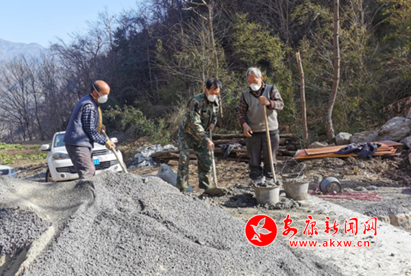 上竹鎮(zhèn)中心村肖家溝產(chǎn)業(yè)路復(fù)工,工人們戴著口罩做好防護,忙得熱火朝天。這條產(chǎn)業(yè)路是打通中心村桂花苗圃的“最后一公里”。