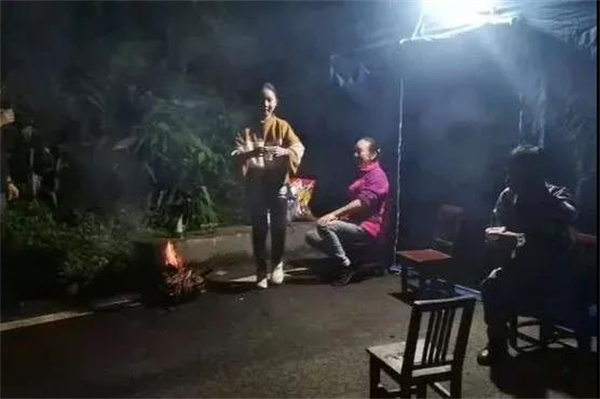 村民大姐帶女兒送來(lái)火盆和茶水