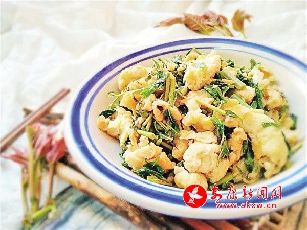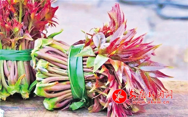 香椿 春天必吃的一道時令菜。香椿又叫做椿芽、春尖葉,香椿初發(fā)芽長葉的時候,掐香椿頭拿來做成香椿炒雞蛋吃,吃在嘴里脆嫩新鮮,味美爽口,齒頰俱芬。鎮(zhèn)坪的香椿響當(dāng)當(dāng)?shù)那嗄塾形叮t得發(fā)紫的葉芽,閃著點(diǎn)兒油光,看起來就很好吃。