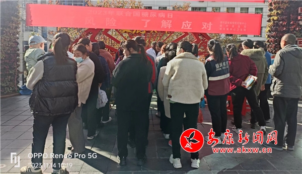 活動現(xiàn)場、醫(yī)護人員通過發(fā)放宣傳手冊,現(xiàn)場科普等方式,向社區(qū)居民宣傳糖尿病的基本知識、危害和預防措施。向前來咨詢的群眾提供免費檢測血糖、血壓等服務,從飲食、運動到預防、治療,事無巨細地為前來咨詢的居民進行健康指導,引導社區(qū)居民關注自身健康狀況,做到早預防、早發(fā)現(xiàn)、早診斷、早治療。