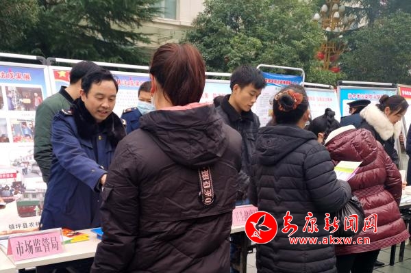 啟動儀式結束后,32個相關部門圍繞“弘揚憲法精神,建設法治鎮(zhèn)坪”的宣傳主題,按照統(tǒng)一安排,在鎮(zhèn)坪縣中心廣場集中開展宣傳活動。在做好憲法宣傳的同時,鎮(zhèn)坪縣市場監(jiān)管局結合自身職能職責,通過設立宣傳咨詢臺、懸掛標語、擺放展板、發(fā)放宣傳資料等方式,開展了市場監(jiān)管系統(tǒng)法律法規(guī)的宣傳和咨詢活動,大力宣傳《食品安全法》《藥品管理法》《消費者權益保護法》《特種設備安全法》等法律法規(guī)知識,積極向廣大群眾發(fā)放宣傳資料,熱情耐心地向咨詢?nèi)罕娦v食品藥品安全、偽劣產(chǎn)品鑒別等法律法規(guī)知識,并告知群眾一些消費注意事項,提高群眾的識假辨假能力和依法維權意識。