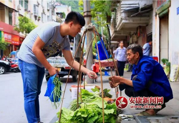安康新聞網(wǎng)訊 清晨5點剛過,鎮(zhèn)坪縣城關(guān)鎮(zhèn)小河村彭征定老人就挑著一擔(dān)新鮮蔬菜走出了家門。豇豆、白菜、茄子、辣椒、黃瓜等各種新鮮時令蔬菜放在兩只破爛的竹筐中……