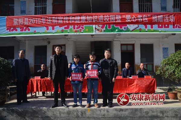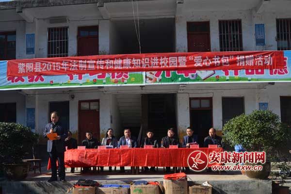 安康新聞網(wǎng)訊 (通訊員 肖寶) 在“12•4”國(guó)家憲法日暨全國(guó)法制宣傳日即將到來之際,11月26日,由紫陽(yáng)團(tuán)縣委舉辦的紫陽(yáng)縣2015年法制宣傳和健康知識(shí)進(jìn)校園暨“愛心書包”捐贈(zèng)活動(dòng)走進(jìn)斑桃小河小學(xué);顒(dòng)現(xiàn)場(chǎng),紫陽(yáng)團(tuán)縣委為全校學(xué)生購(gòu)買了價(jià)值1.5萬(wàn)元的愛心書包和手套,并及時(shí)發(fā)放到了每個(gè)學(xué)生的手中。