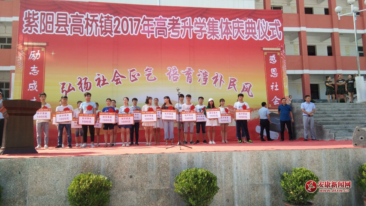 安康新聞網(wǎng)(通訊員 劉成軍)為切實(shí)貫徹落實(shí)黨的十八大以來關(guān)于優(yōu)良黨風(fēng)帶政風(fēng)促民風(fēng)的部署要求,進(jìn)一步優(yōu)化民風(fēng)引領(lǐng)社會(huì)文明進(jìn)步,弘揚(yáng)優(yōu)秀傳統(tǒng)文化、厚植發(fā)展軟實(shí)力,大力推進(jìn)“誠、孝、儉、勤、和”新民風(fēng)建設(shè)。8月2日早晨,由紫陽縣高橋鎮(zhèn)黨委、政府牽頭,在高橋中學(xué)操場隆重舉行了該鎮(zhèn)首場2017年高考升學(xué)集體慶典儀式。鎮(zhèn)領(lǐng)導(dǎo)班子成員、全鎮(zhèn)今年的準(zhǔn)大學(xué)生、家長、親友、同學(xué)、教師及社區(qū)居民共同參加了慶典儀式。