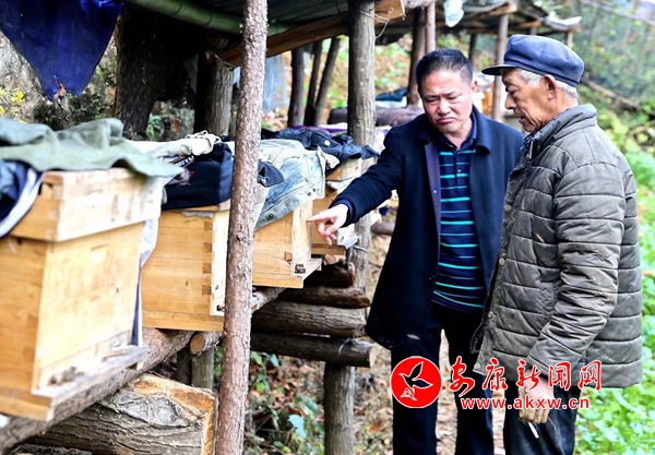 這位被百姓親切地稱他是扶貧路上永不歇腳的“背二哥”,沒(méi)有在受傷后退卻,仍然踏著泥濘的道路一步一步的朝著貧困戶賀代安家走去,直到指導(dǎo)賀代安等養(yǎng)蜂戶完成了蜜蜂分箱工作,才返回村部療傷。