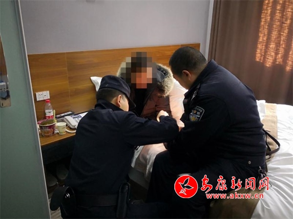 通過緊張有序的工作,很快查明該女子在縣城某賓館,民警快速前往,在該賓館找到正在自殘的湖南女子涂某,此時(shí)涂某雙手腕部均被銳器劃傷,民警通過大量勸說工作,并買來藥物,對(duì)涂某的傷口進(jìn)行包扎,看到忙得滿頭大汗的民警,涂某逐漸恢復(fù)理智,放棄輕生。