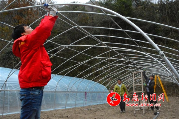 11月27日,筆者在蔬菜水果種植基地看到,扶貧隊(duì)員何正義正帶領(lǐng)十多位群眾搭建大棚。何正義介紹,在完善銷售平臺的同時(shí),燎原村也在迅速培育增收產(chǎn)業(yè),新建五個(gè)大棚將用來種植冬棗的。
