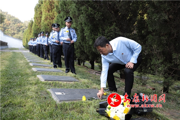 全體公安民警來到原紫陽縣公安局煥古派出所民警、革命烈士、全國公安系統(tǒng)二級英雄模范羅春明墓碑前,依次獻花、行鞠躬禮,并為長眠于此的革命烈士掃墓。