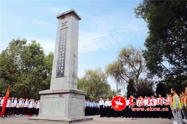 紫陽小學學生齊唱《我們是共產(chǎn)主義接班人》。全體人員手持白菊花,依次向革命烈士紀念碑獻花,行鞠躬禮,寄托深切哀思。