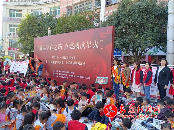 紫陽縣文旅廣電局、縣圖書館、新華書店紫陽分公司舉行“重溫革命之路·點(diǎn)燃閱讀星火”慶祝建黨100周年閱讀推廣活動(dòng),200余名幼兒參加了閱讀分享活動(dòng),并提供200余本黨史主題圖書和50本電子圖書供市民免費(fèi)閱讀。
