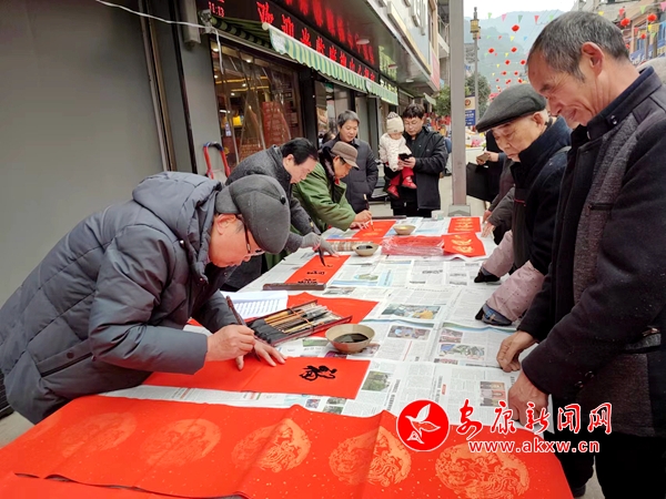 本網(wǎng)訊(通訊員 葉柏成)喜慶的佳節(jié)將到來,火紅的春聯(lián)寫起來。1月30日,紫陽縣麻柳鎮(zhèn)集鎮(zhèn)街道,人頭攢動。在中街的義務(wù)寫春聯(lián)活動,正在如火如荼地進行著,受麻柳鎮(zhèn)政府邀請,由紫陽縣文聯(lián)、紫陽縣老年大學(xué)共同組織老年書法班的學(xué)員,為該鎮(zhèn)群眾義務(wù)書寫春聯(lián),在傳統(tǒng)佳節(jié)到來之際,為老百姓送上火紅溫馨的祝福。