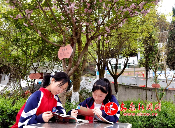 △ 同學(xué)們在櫻花樹下晨讀m2q安康新聞網(wǎng)