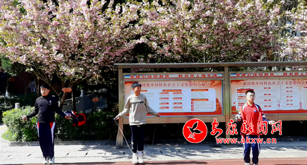 △ 同學(xué)們在櫻花樹下跳繩m2q安康新聞網(wǎng)