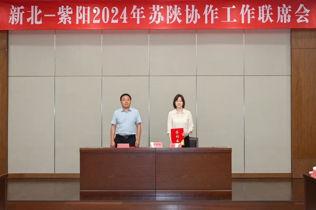 王燊代表紫陽縣對我區(qū)長期以來的支持表示誠摯謝意。她表示,新北、紫陽結(jié)對以來,新北區(qū)黨委、政府及社會各界人士始終以強烈的政治擔(dān)當(dāng),用一大批專業(yè)技術(shù)人才、一年年真金白銀支持、一條條務(wù)實管用舉措,把“紫陽所需”與“新北所能”有機結(jié)合。紫陽縣將堅持優(yōu)勢互補、互惠互利、長期協(xié)作、共同發(fā)展的原則,推動雙方協(xié)作取得更大實質(zhì)性進展,努力打造蘇陜協(xié)作交流的典范。