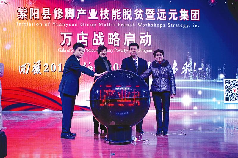 2016年2月2日,紫陽縣發(fā)展修腳產(chǎn)業(yè)推進(jìn)技能脫貧動(dòng)員大會(huì)召開,遠(yuǎn)元集團(tuán)萬店戰(zhàn)略啟動(dòng)。 陳剛攝紫陽縣職教中心成為國內(nèi)第一個(gè)由政府主導(dǎo)的修腳技師培訓(xùn)基地。 (……