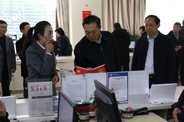在市政務(wù)服務(wù)大廳、市公共資源交易中心,王剛查看各業(yè)務(wù)進(jìn)駐窗口、部分開評標(biāo)室和視頻監(jiān)控室,詳細(xì)了解業(yè)務(wù)辦理情況、招投標(biāo)工作流程、監(jiān)督管理等情況。隨后召開座談會,認(rèn)真聽取市行政審批服務(wù)局工作情況匯報。他強(qiáng)調(diào),要圍繞“全國一流、全省先進(jìn)”目標(biāo),深入推進(jìn)“放管服”改革、相對集中行政許可權(quán)改革和行政審批制度改革,扎實(shí)推進(jìn)政務(wù)服務(wù)“一網(wǎng)通辦”,大力營造良好營商環(huán)境。要不斷提高規(guī)范化水平,建設(shè)一流政務(wù)服務(wù)團(tuán)隊(duì),為群眾和企業(yè)辦事提供更優(yōu)質(zhì)更高效的服務(wù)。