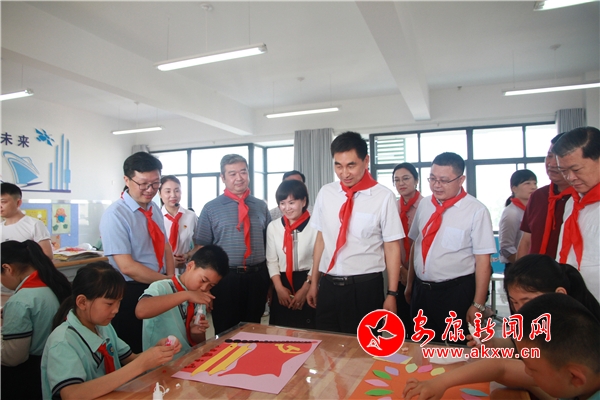 在高新一小,郭青先后走進(jìn)少先隊(duì)活動(dòng)室和手工課堂,詳細(xì)了解學(xué)校軟硬件建設(shè)、教育教學(xué)活動(dòng)開展等情況,認(rèn)真傾聽學(xué)生代表“黨建帶隊(duì)建,紅色故事我來講”發(fā)言,和同學(xué)們一道完成“戰(zhàn)斗英雄楊根思”剪紙版畫,并祝同學(xué)們節(jié)日快樂。他說,少年兒童是國家的未來和民族的希望,同學(xué)們要樹立遠(yuǎn)大理想,珍惜美好時(shí)光,勤學(xué)上進(jìn)、強(qiáng)健體魄、錘煉意志,努力做德智體美勞全面發(fā)展的新時(shí)代好少年。各級(jí)各部門和學(xué)校要更加關(guān)心關(guān)愛少年兒童,帶著感情、帶著責(zé)任抓好教育,為少年兒童茁壯成長創(chuàng)造有利條件;當(dāng)前要切實(shí)抓好常態(tài)化疫情防控,確保孩子們生命安全和身體健康。
