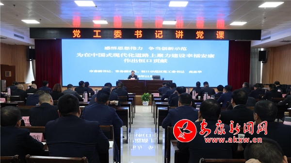 本網(wǎng)訊(通訊員 李祖明)11月9日,市委副書記、常務(wù)副市長(zhǎng)、恒口示范區(qū)黨工委書記高晶華以“感悟思想偉力、爭(zhēng)當(dāng)創(chuàng)新示范,為在中國(guó)式現(xiàn)代化道路上聚力建設(shè)幸福安康作出恒口貢獻(xiàn)”為題,為恒口示范區(qū)黨員干部講授主題教育專題黨課。