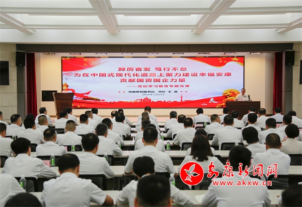 本網(wǎng)訊(通訊員 羅江 記者 吳單)7月1日,根據(jù)市政府黨組黨紀(jì)學(xué)習(xí)教育計(jì)劃安排,市委副書(shū)記、市長(zhǎng)王浩為市屬?lài)?guó)有企業(yè)領(lǐng)導(dǎo)干部講授“踔厲奮發(fā)、篤行不怠,為在中國(guó)式現(xiàn)代化道路上聚力建設(shè)幸福安康貢獻(xiàn)國(guó)資國(guó)企力量”專(zhuān)題黨課。副市長(zhǎng)周孝斌主持。