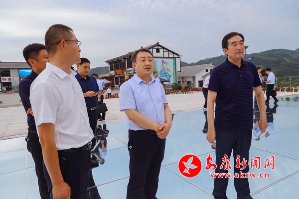 市長(zhǎng)武文罡(中一)在石泉縣金蠶小鎮(zhèn)調(diào)研