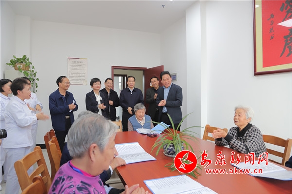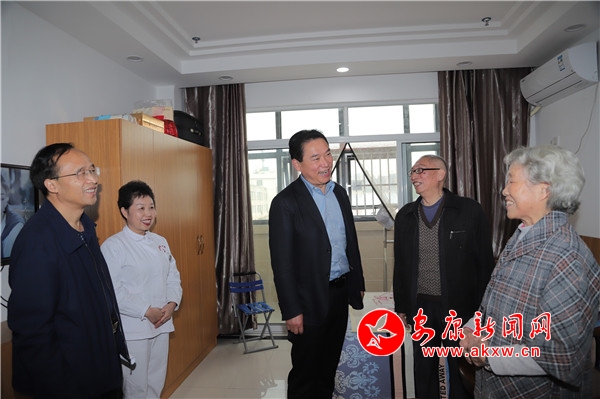 漢濱區(qū)陽光護(hù)理院,秋日和煦、窗明幾凈,五彩繽紛的小風(fēng)車隨風(fēng)輕動,一派安逸恬靜的幸福景象。趙俊民拉著老人們的手親切詢問:“老人家,身體好健旺。∽≡谶@里感覺怎么樣?”老人連聲稱道:“好哇,好哇!吃得好,住得好,環(huán)境好,還有一幫老伙伴,大家都很開心!”看到老人們紅光滿面、精神矍鑠,趙俊民對護(hù)理院的工作予以充分肯定,要求大家要做到愛心、細(xì)心、耐心,努力為老人們營造更好的生活環(huán)境。