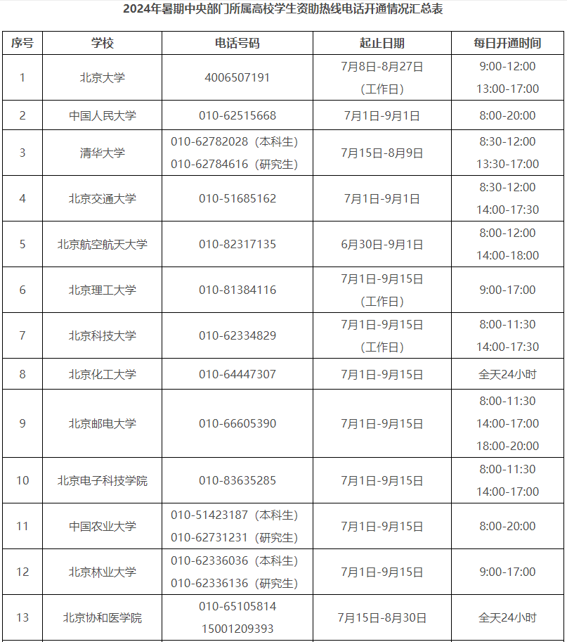 各省(自治區(qū)、直轄市)和中央部門所屬高校同步開通了熱線電話,電話號碼與開通時間可查看匯總表。