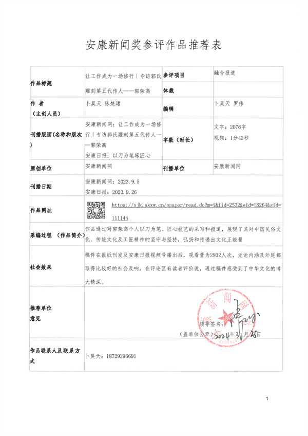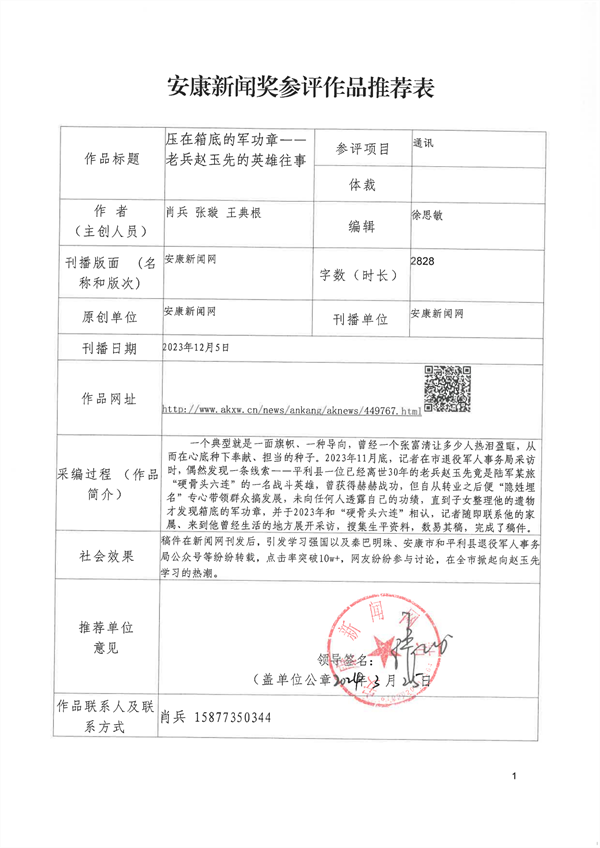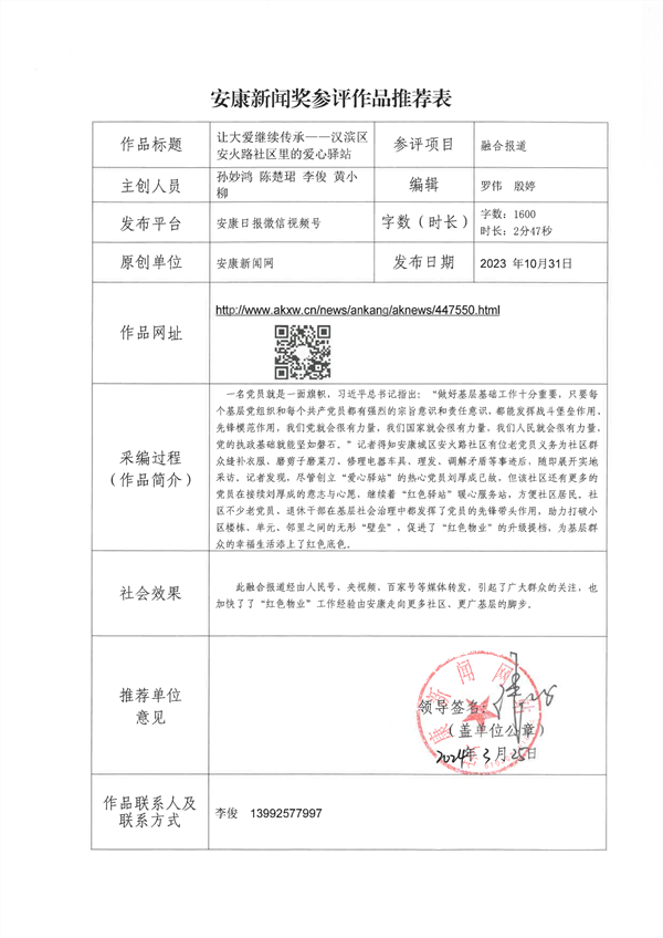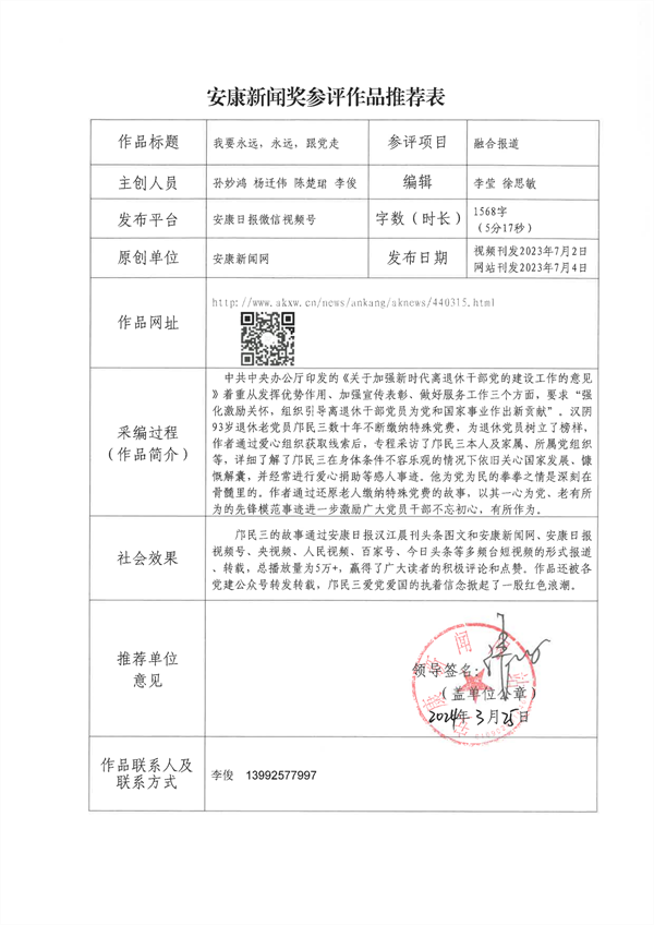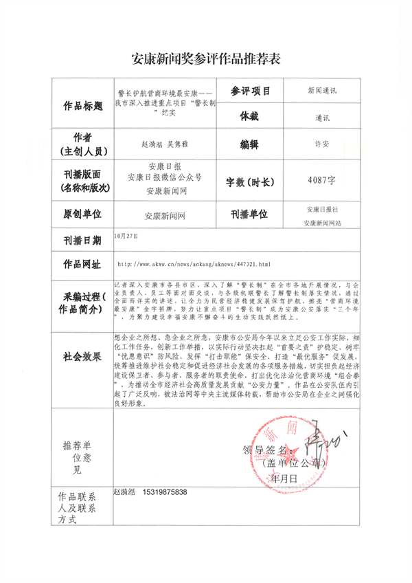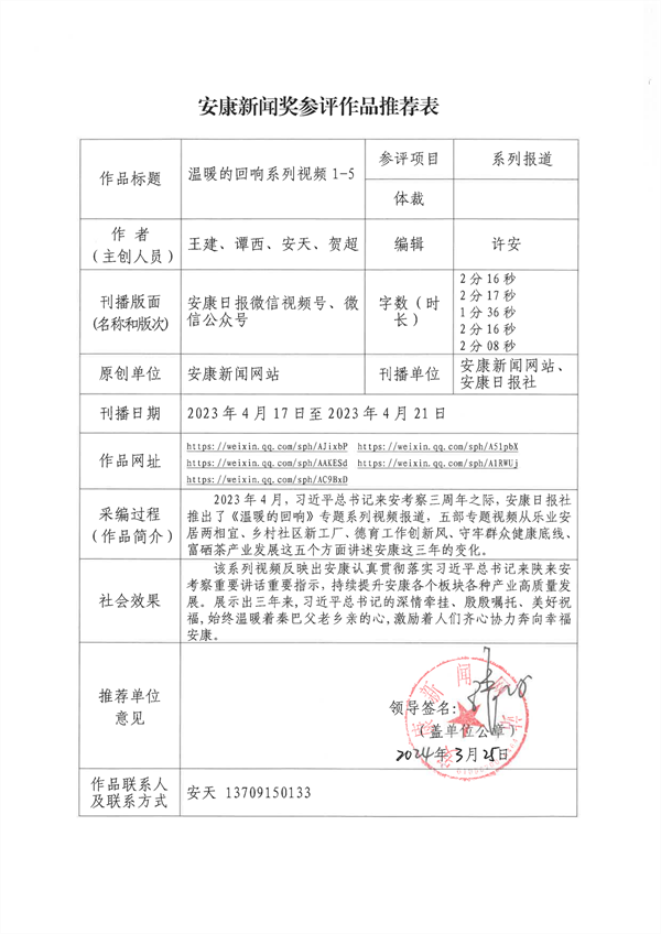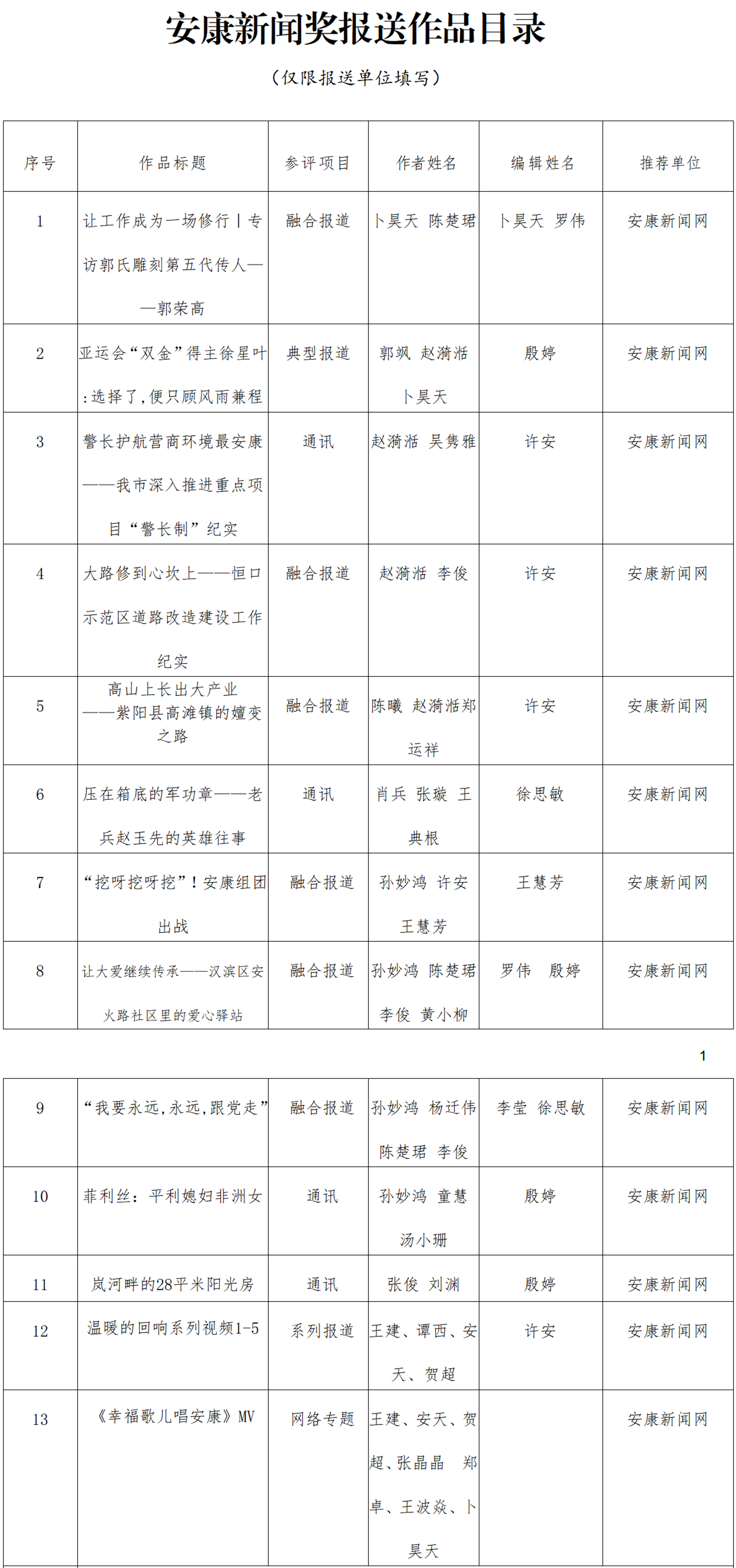 經(jīng)過編委會推薦、社黨委研究決定,擬推薦以下13件新聞作品參評2023年度“安康新聞獎”。公示時間從2024年3月25日至2024年3月29日,公示期為5個工作日。如有不同意見,請向安康日報社機(jī)關(guān)紀(jì)委、新聞管理部反映。nyB安康新聞網(wǎng)