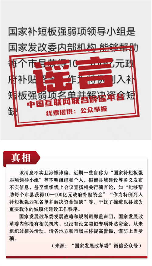 謠言2:有“國家補短板強弱項領導小組”并設立專項補貼?Qp7安康新聞網(wǎng)