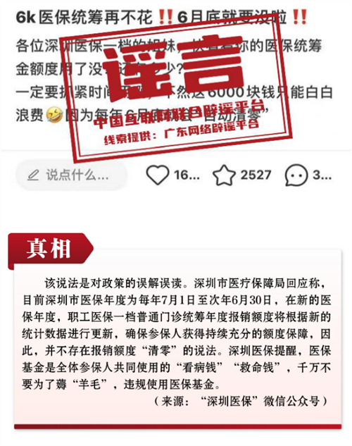 謠言6:深圳醫(yī)保統(tǒng)籌額度再不花,6月底就“清零”?Qp7安康新聞網(wǎng)