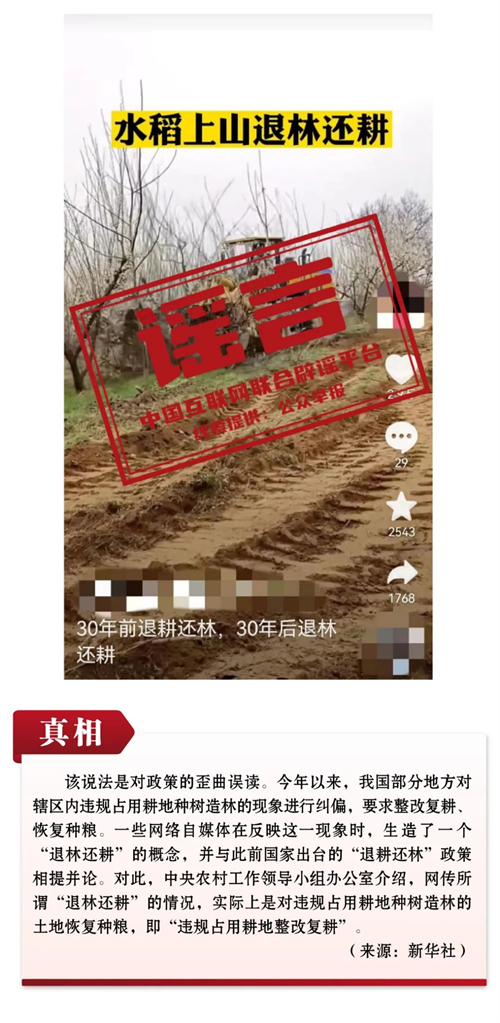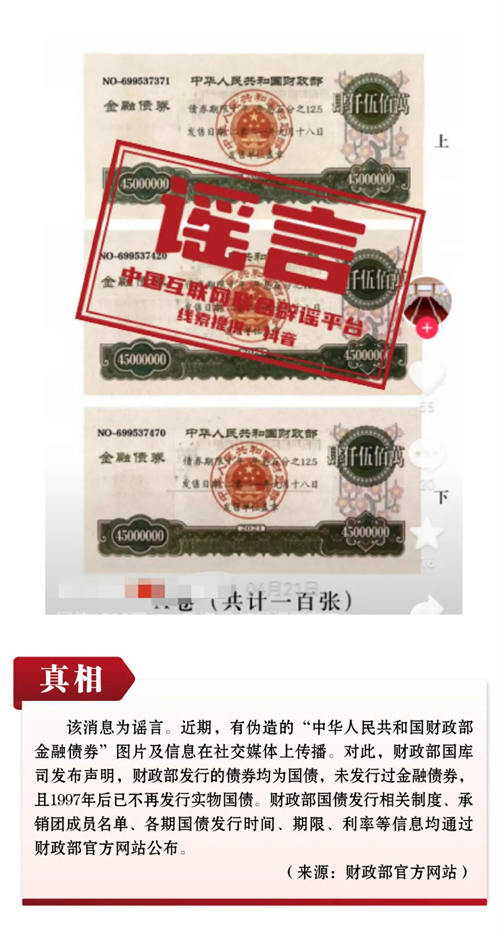 歪曲杜撰,冒用官方名義設騙局。不法分子冒用國家部委、國企或權威機構名義,偽造文件、捏造虛假信息對外發(fā)布,企圖擾亂正常市場秩序并從中行騙牟利。諸如“財政部發(fā)行金融債券”“三部門聯(lián)合發(fā)文將發(fā)放家庭農場等專項涉農補貼”“國鐵集團授權‘八縱八橫 ’APP推出理財產品”“中國商飛發(fā)布‘C919私募基金’等投資理財項目”等信息迷惑性極強,實為騙子以高額返利為誘餌設置的陷阱。此外,還有自媒體歪解誤讀公共政策,有意混淆概念誤導公眾。如,針對“違規(guī)占用耕地整改復耕”,生造“退林還耕”概念,并將其與此前國家出臺的“退耕還林還草”政策相提并論,實質是對加強耕地保護和用途管控的歪曲。