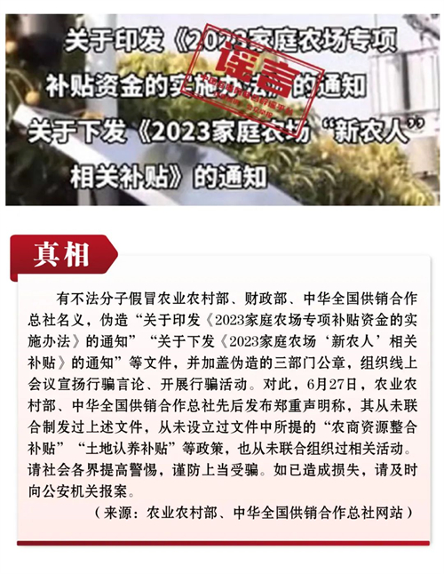 謠言1:三部門聯(lián)合發(fā)文將發(fā)放家庭農場等專項涉農補貼?