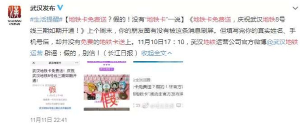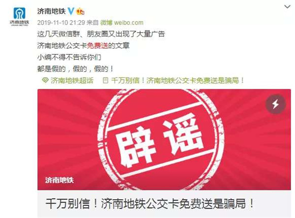 近年來,一些“免費贈送地鐵交通卡”的活動網(wǎng)頁時常在全國多地流傳,對此各路官方曾多次進行辟謠提醒。