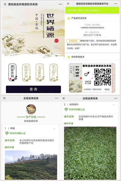 紫陽縣建立了紫陽茶溯源系統(tǒng),利用區(qū)塊鏈、一品一碼等技術(shù),為紫陽茶制作獨一無二的溯源檔案,生成唯一的溯源二維碼,通過手機掃描產(chǎn)品包裝上的二維碼,即可快速通過圖片、實時監(jiān)控視頻等方式,查看紫陽茶從茶園、生產(chǎn)加工、檢測等全程溯源檔案信息。 Pky安康新聞網(wǎng)