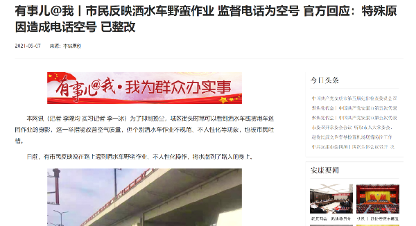 安康新聞網(wǎng)履行媒體輿論監(jiān)督職能,聚焦民生問題,刊發(fā)《私家車違停公交站停車站點》《有事兒@我 | 一小區(qū)因停電電梯停運 業(yè)主爬30層樓梯上下班》等監(jiān)督性新聞稿件;同時積極開展調(diào)查性報道,追蹤事實真相,發(fā)布《記者調(diào)查:安康電動車停車和充電現(xiàn)狀》《市民反映灑水車野蠻作業(yè) 監(jiān)督電話為空號 官方回應(yīng):特殊原因造成電話空號 已整改》等一批原創(chuàng)新聞,反映群眾呼聲,推進(jìn)問題解決,體現(xiàn)地方黨媒的責(zé)任與擔(dān)當(dāng)。