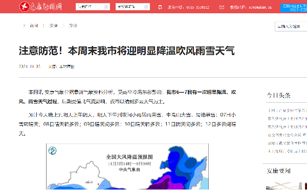 作為安康市一家具有新聞采編發(fā)布資質(zhì)的重點新聞網(wǎng)站,安康新聞網(wǎng)積極履職,做好重要政策發(fā)布、生活信息推送。2021年,安康新聞網(wǎng)站準(zhǔn)確刊播政務(wù)消息,及時發(fā)布動態(tài)信息以及醫(yī)療、出行、生活、辟謠等公共服務(wù)內(nèi)容,保證了政務(wù)消息、惠民政策消息及時準(zhǔn)確地傳播。9月以來安康汛期持續(xù)緊張,安康新聞網(wǎng)利用微信、微博等同步推送天氣預(yù)警、交通中斷情況、應(yīng)急避難指南等消息220余條,把最權(quán)威的信息、最感人的現(xiàn)場、最堅定的勇氣和最溫暖的關(guān)切第一時間傳遞給全市人民,以實際行動履行黨媒政治職責(zé),從細(xì)微入手,提升媒體服務(wù)質(zhì)量和為民服務(wù)意識。