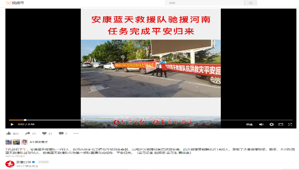 突出短視頻新聞特點,滿足受眾需求,好新聞權(quán)威發(fā)聲。“安康兩會”“十四運”、抗洪救災(zāi)、馳援河南等重大主題報道,安康新聞網(wǎng)通盤策劃,著眼融合,采寫發(fā)布相關(guān)視頻新聞超200部,不乏精品佳作,占據(jù)傳播空間,取得良好輿論引導(dǎo)效果。