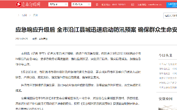 在災(zāi)難和事故報道中,安康新聞網(wǎng)秉承“人民至上、以人為本”理念,如在《應(yīng)急響應(yīng)升級后 全市沿江縣城迅速啟動防汛預(yù)案 確保群眾生命安全》報道,重點聚焦應(yīng)急響應(yīng)升級后全市沿江縣城迅速啟動防汛預(yù)案情況,確保人民群眾生命安全。同時安康新聞網(wǎng)還針對一些公共安全事件或突發(fā)事件,及時發(fā)布防御知識和相關(guān)科普內(nèi)容。