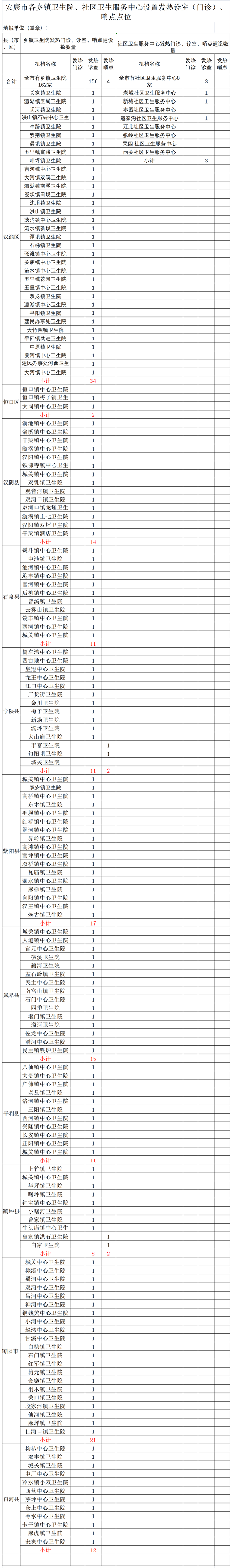 安康市各鄉(xiāng)鎮(zhèn)衛(wèi)生院、社區(qū)衛(wèi)生服務中心設置發(fā)熱診室(門診)、哨點點位
