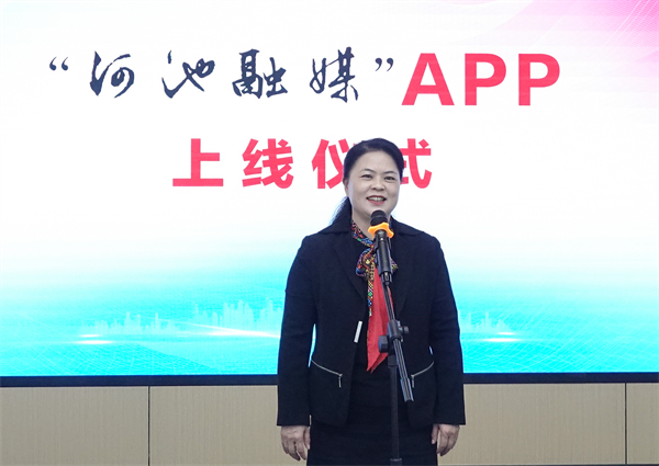 △ 市委常委、宣傳部部長孔獻玲宣布“河池融媒”APP正式上線。