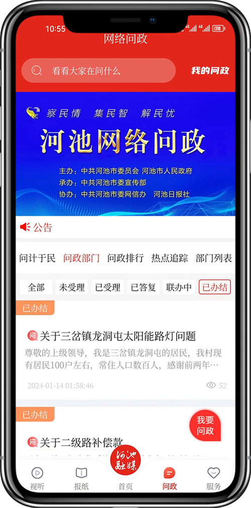 “政務(wù)+服務(wù)”進一步優(yōu)化升級,提供網(wǎng)絡(luò)問政、報料投稿、生活繳費、健康驛站等政務(wù)民生服務(wù),更好滿足群眾辦事需求。