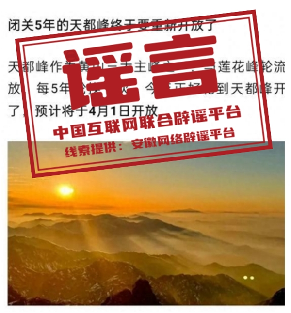 謠言:黃山天都峰4月1日結(jié)束輪休對(duì)外開(kāi)放?