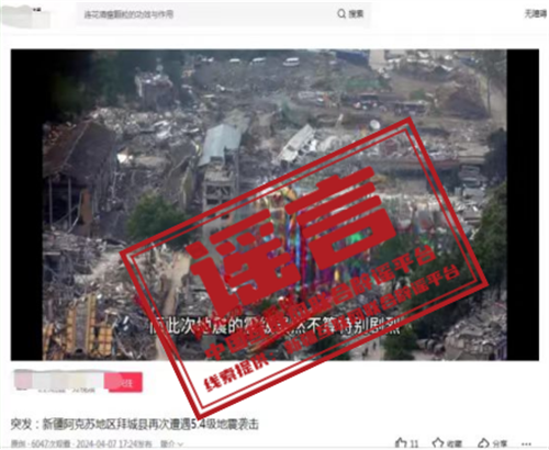 詳情:4月7日、8日,新疆阿克蘇地區(qū)拜城縣先后發(fā)生5.4、5.1級地震。震中位于無人區(qū),目前暫未收到人員傷亡或財產(chǎn)損失報告,當?shù)赝ㄓ、供電、交通正常。但有部分自媒體為博眼球、蹭流量,利用AI智能技術等手段拼湊網(wǎng)絡舊圖,發(fā)布拜城地震不實圖文、音視頻等信息,嚴重誤導網(wǎng)民。阿克蘇地區(qū)互聯(lián)網(wǎng)信息辦公室提醒,對在網(wǎng)上蓄意編造、傳播散布謠言,擾亂公共秩序等違法行為,網(wǎng)信部門將會同公安機關依法嚴厲打擊。(來源:“新疆網(wǎng)絡辟謠”微信公眾號)