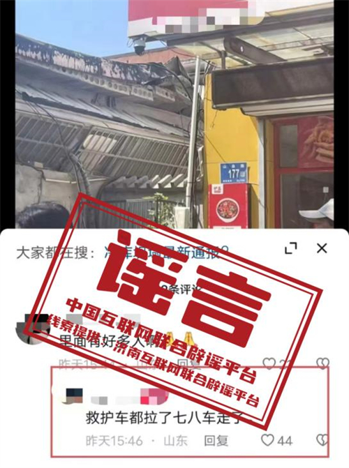 謠言:濟南一門店坍塌,救護車拉了七八車?