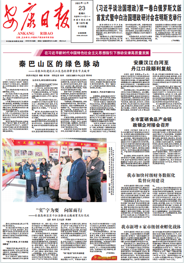 (2023年12月23日安康日?qǐng)?bào)01版陜西日?qǐng)?bào)、安康日?qǐng)?bào)、縣級(jí)融媒體中心記者三級(jí)聯(lián)動(dòng)《秦巴山區(qū)的綠色脈動(dòng)——安康加快建設(shè)漢江生態(tài)經(jīng)濟(jì)帶重要節(jié)點(diǎn)城市》)