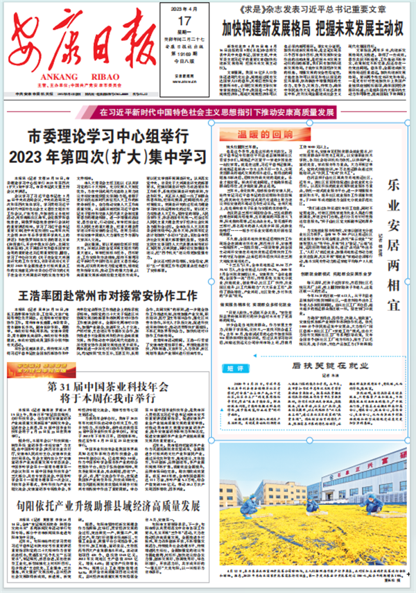 (2023年4月17日安康日?qǐng)?bào)01版開(kāi)設(shè)“在習(xí)近平新時(shí)代中國(guó)特色社會(huì)主義思想指引下推動(dòng)安康高質(zhì)量發(fā)展”“溫暖的回響”欄目)