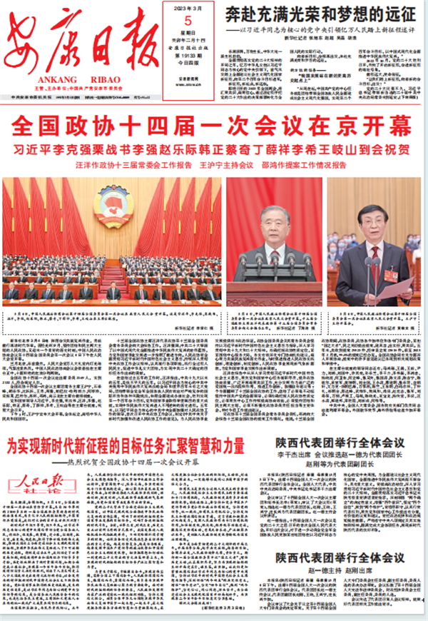 (2023年3月5日安康日?qǐng)?bào)01版《全國(guó)政協(xié)十四屆一次會(huì)議在京開(kāi)幕》)