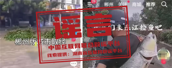 7月28日,某短視頻平臺(tái)出現(xiàn)兩段視頻,一段是城市街道被洪水淹沒并配文“郴州版城市取經(jīng)”的視頻;另一段是暴雨過后在積水中抓魚并配文“友友們來東江撿魚吧”的視頻。經(jīng)湖南郴州網(wǎng)信部門核實(shí),相關(guān)視頻系網(wǎng)民惡意拼湊,郴州并未出現(xiàn)視頻所述情況。網(wǎng)信部門已將謠言線索移交公安部門依法處置。