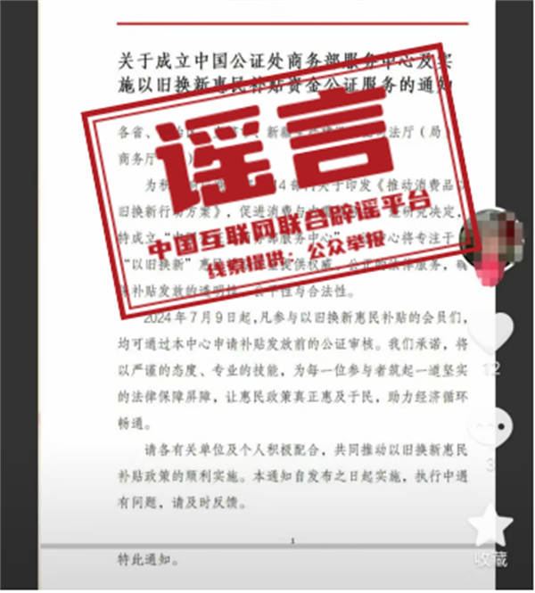 辟謠:商務(wù)部發(fā)布聲明:從未發(fā)布《關(guān)于以舊換新惠民款補貼發(fā)放的公證通知》